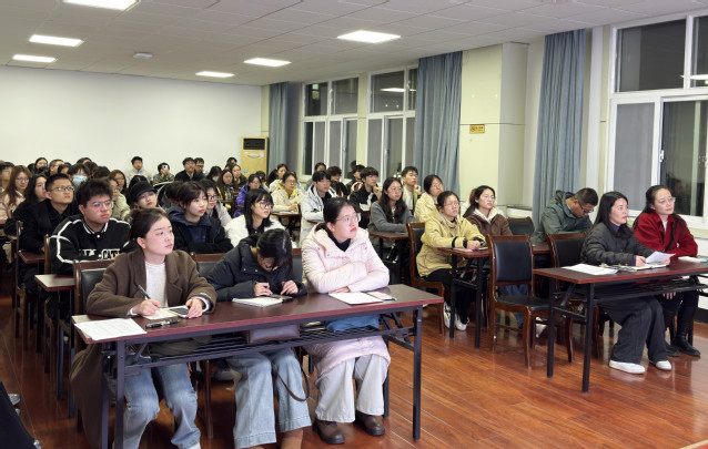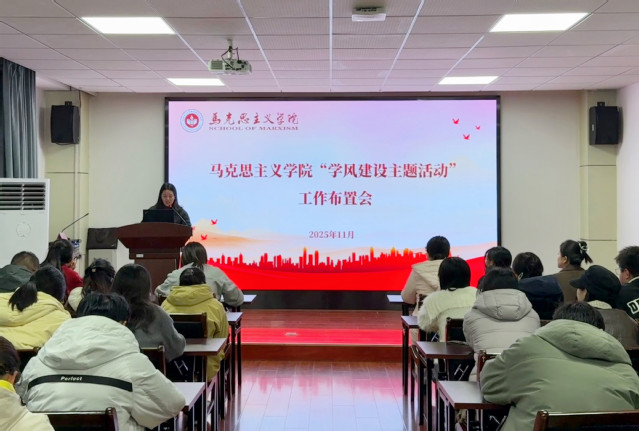 为深入落实立德树人根本任务,进一步涵养勤奋严谨、求实创新的优良学风,11月21日下午,马克思主义学院在16号楼302报告厅召开2025-2026学年学风建设主题活动动员部署会。学院党委副书记文雯、全体专兼职辅导员、本硕学生干部代表80余人参会,会议由学生工作办公室主任戴笑笑主持。