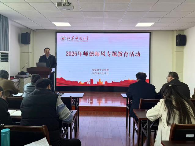 学院党委书记吴丁玲作师德师风专题教育动员讲话。他传达了学校关于开展师德师风专题教育活动的通知精神,明确指出师德师风是评价教师队伍素质的第一标准,必须常抓不懈、久久为功。全体教职工集中观看了《最美教师人物短片展播》,从榜样事迹中汲取精神力量、凝聚育人共识。会后,学院将组织全体教职工深入学习2026年全国教育工作会议精神及《教育部等六部门关于加强新时代高校青年教师队伍建设的指导意见》,推动师德师风建设融入日常、贯穿始终,真正内化于心、外化于行。