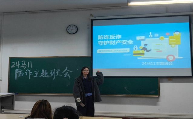 2411班围绕防诈反诈主题,开展守护财产安全,远离电信诈骗专题班会。活动针对大学生群体易遭遇的刷单返利、冒充客服、校园贷等高发诈骗类型,结合真实案例剖析诈骗分子惯用手法与话术套路,普及不轻信、不透露、不转账防诈原则,指导同学们规范使用国家反诈中心APP,通过情景模拟互动提升识骗防骗能力,切实守护个人财产安全。